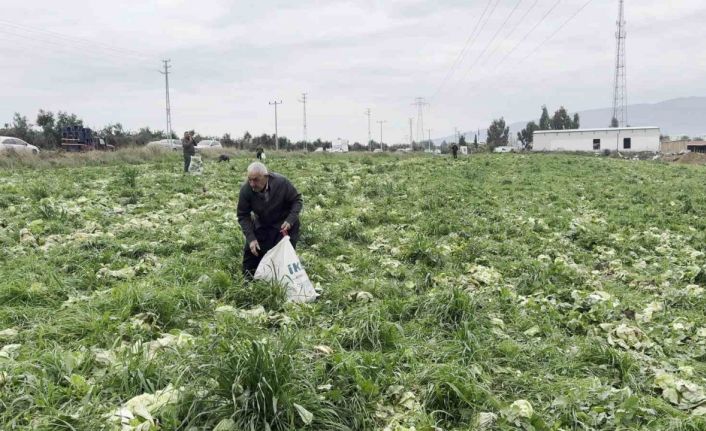 Tavuklarına marul topladığını ifade eden Mehmet Demir ise, "Marul tarlasında marulları böyle bedava topluyoruz. Tavuklara vereceğiz" diye konuştu.
