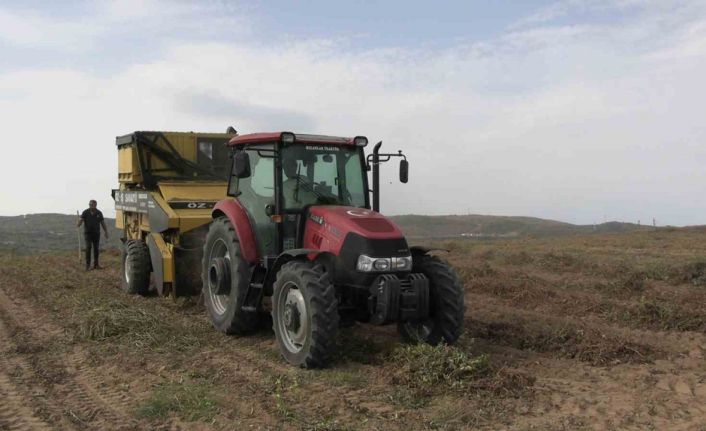 Edirne’nin Meriç ilçesinde bağlı Alibeyköy’de alternatif ürün olarak ata tohumu ile ekilmeye başlanan coğrafi işaretli yer fıstığında hasat mesaisi başladı.
