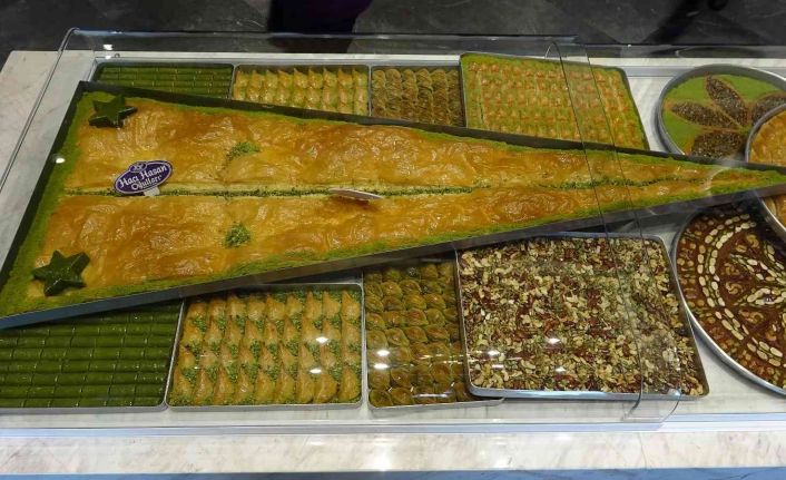 Bursa’da ünlü baklava ustasının 9.şubesinin açılışı için yaptığı 1,7 metre uzunluğundaki 15 kiloluk 150 kişilik havuç dilimi baklavayı görenler gözlerine inanamadı.