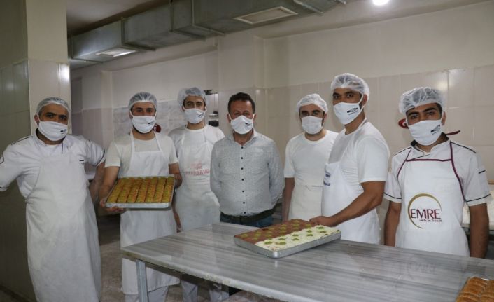 Van’da Kurban Bayramı sayılı günler kala, vatandaşların tatlı talebinin karşılamak isteyen pastane ve tatlı imalathaneleri, yoğun çaba gösteriyor. Bayrama sayılı günler kala başta baklava olmak üzere çeşitli tatlılar yapmak için çalışmalarını hızlandıran ustalar, siparişleri yetiştirebilmenin tatlı telaşını yaşıyor. Müşterilerinin istedikleri tatlıları bayrama yetiştirmek için gece gündüz çalışan tatlıcılar, imalathanelerde tatlı siparişlerini yetiştirmeye çabalıyor. Korona virüs ile mücadele kapsamında tüm önlemleri alan usta eller, hazırladıkları birbirinden lezzetli tatlıları, vatandaşların hizmetine sunuyor. 25 yıldır sektörde hizmet verdiğini ifade eden Elif Pastaneleri sahibi Cevdet Gümüştaş, iki yıldır korona virüs pandemisi nedeniyle tatlıya ilginin az olduğunu söyledi. Elif Pastaneleri olarak belli bir müşterilerinin olduğunu dile getiren Gümüştaş, “Şu anda korona virüsten önceki süreç kadar yoğun bir ilgi yok, bayram heyecanı yok. İnşallah hep birlikte önceki bayramların heyecanını yeniden yaşarız. Bunun için lütfen herkes aşı olsun” dedi.