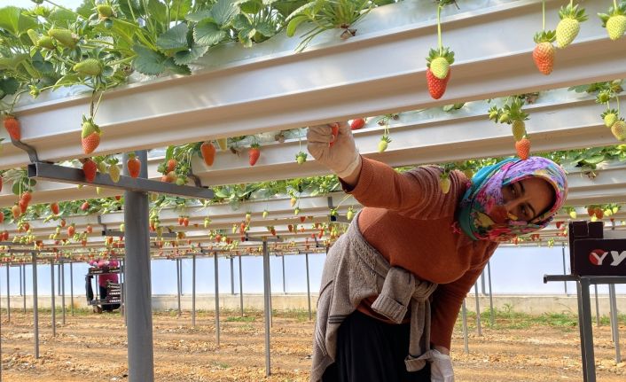 Türkiye’nin örtü altı tarımında söz sahibi Antalya’da topraksız tarımla yetiştirilen çilekler, yurt dışından gelen taleplere yetişemiyor. Tarımda son yıllarda rekolteyi yükseltmek için yapılan topraksız tarım uygulamaları, her geçen gün bir yenisini bünyesine ekliyor. Bu yöntemle yetiştirilen çilek rekoltesi, topraklı tarıma göre 5 kat daha fazla artıyor. Çilekler yurt içine seradan kilogramı 14,5 TL, yurt dışına ise 17 TL’den çıkıyor.