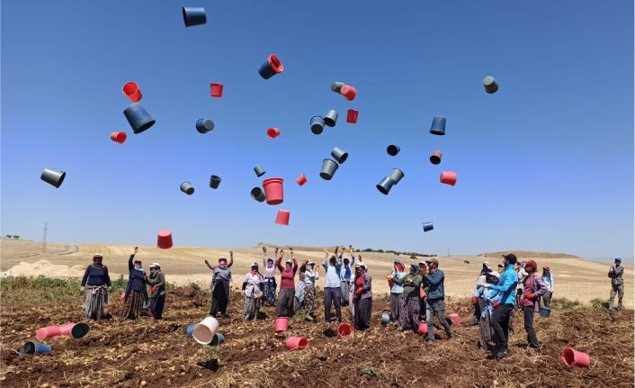 Adıyaman’ın Kahta ilçesine bağlı Tuğlu köyünde yerli patates hasadı kova atma töreni ile bitti.