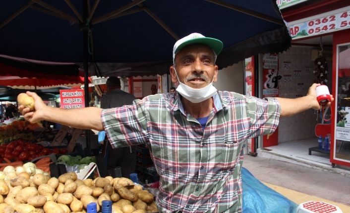 Pazarcı Ayşe Göksal, "Şimdi her şey bedava. Bol olduğu için böyle. Dışarı gitseydi farklı olurdu ama dışarı gitmiyor. Patates soğan 2 -2.5 TL’ydi. Şimdi 1 - 1.5 TL’ye bulunabiliyor. ama işler yine de eskisi gibi değil. Pazar biraz durgun" ifadelerini kullandı.