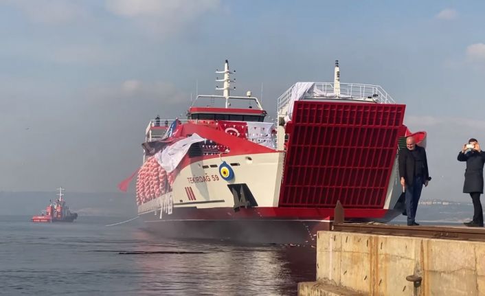 Yalova Türkoğlu tersanesinde hazırlanan törenle denize indirilen bin 800 gross tonluk devasa Tekirdağ 59 Ro-Ro 60 milyon liraya mal oldu.