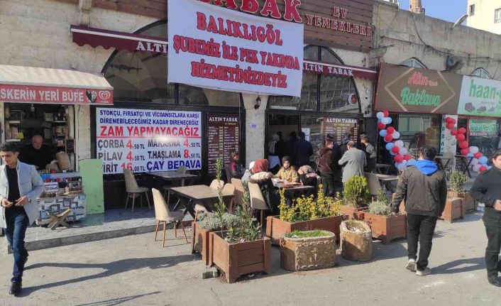 Şanlıurfa’da bir lokanta esnafı zam fırsatçılarına tepki göstererek, “Stokçu, fırsatçı ve vicdansızlara karşı direnebileceğimiz kadar direneceğiz zam yapmayacağız’’ afişi astı.