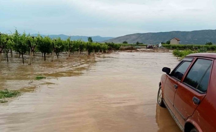 Sarıgöl’ün Şeyhdavutlar ve Güneydamları Mahallesi’ndeki Çınarlı Dere ile Denizli’nin Buldan ilçesine bağlı Eziler, Karaköy ve Boğazçiftliği derelerinin birleştiği Kocaçay taşarak sulama kanalına doldu ve ardından üzüm bağlarını su bastı.