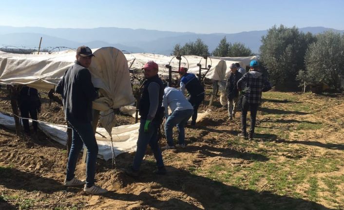 Manisa’nın Sarıgöl ilçesindeki üzüm bağlarında her yıl temmuz ayında başlatılan koruma maksatlı beyaz kanaviçe ile örtü çalışmaları yapılan soğuk hava ve kar yağışı uyarısı nedeniyle bu yıl erken başlatıldı. Tehlike geçene kadar yaklaşık 20 gün boyunca örtü altında kalacak olan bağların temmuz ayında yeniden örtü alınmasına başlanacak.