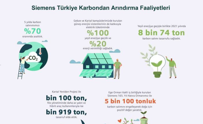 Ürettiği teknoloji ve sunduğu çözümlerle küresel ölçekte sürdürülebilirliğe öncülük eden Siemens, dünya genelinde karbon nötr olma hedefini 2030 olarak belirledi. Siemens Türkiye ise 2023 yılını işaret ederek, küresel ölçekte karbon ayak izini sıfırlamayı hedefleyen ilk büyük sanayi şirketlerinden biri oldu. Şirket, bu hedef kapsamında gerçekleştirdiği çalışmalarla karbon salımını yüzde 70 oranında azaltarak önemli bir mesafe kat etti. Şirket, Gebze ve Kartal kampüslerine kurulan güneş enerjisi sistemlerinin de katkısıyla elektrik tüketiminde yüzde 100 yeşil enerjiye geçti ve yüzde 20 enerji verimliliği elde etti. Karbon emisyonunu son 5 yıl için yüzde 63 oranında azaltmayı hedefleyen şirket, Akıllı Bina ve Dijital Ofis uygulamaları, enerji verimlilik projeleri ve 10 bin fidanlık Siemens Hatıra Ormanı kurulmasıyla birlikte hedefini aşarak yüzde 70 ilerleme kaydetti ve karbon nötr olmaya bir adım daha yaklaştı.