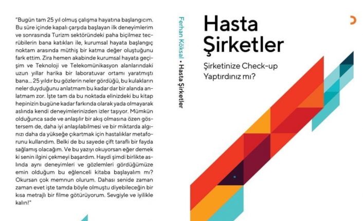 Ferhan Köksal’ın kaleme aldığı ‘Hasta Şirketler’ kitabı, ‘Şirketinize check-up yaptırdınız mı?’ sorusuyla okuyucuyu karşılıyor. Prematüre, diyabet, KOAH, kanser, depresyon ve bipolar bozukluk gibi insanların karşılaştığı hastalıklar, şirket sorunlarına örnek gösterilerek işleniyor. Kitapla ilgili detayları paylaşan Ferhan Köksal, “Bu kitap, güncel yaşamımızdan örnekler içerdiği için, okurken sahibi olduğunuz veya yönettiğiniz şirketlerinize dair benzerlikler bulacaksınız. Tüm şirketlerin yaşayan organizmalar olduğunu düşünürsek, şirketlerin de aslında tıpkı biz insanlar gibi hastalanabileceğini; bu hastalıkların belirtilerini gözlemlemenin, teşhislerini ve hatta tedavilerini de yaptırmanın mümkün olduğunu göreceksiniz. Tam da bu noktada, sağlıklı yaşam yöntemlerini şirketleriniz için de uygulamanın mümkün olabileceğinin farkına varacaksınız. Üstelik bu bilgileri okurken şirketiniz için sağlıklı bir organizasyon kurma fikrine sahip olabileceksiniz” ifadelerini kullandı.