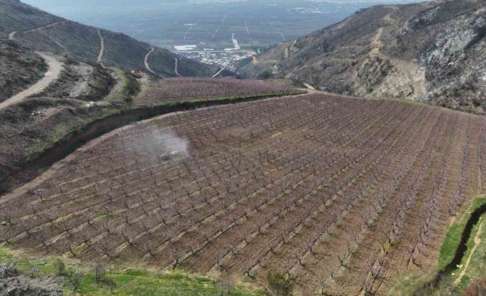 Yükseltilerin arasında, binlerce dekar griye çalan alanın ortasında göz kamaştırıcı bir manzara, bir umut isyanı yükseliyor. Yangının pençesinden sahiplerinin bakımları sayesinden kurtulan, dağların kuytusunda saklı 50 dönümlük şeftali bahçeleri, baharın gelişiyle pembe çiçeklere durdu ve büyüleyici bir görsel şölen sundu.