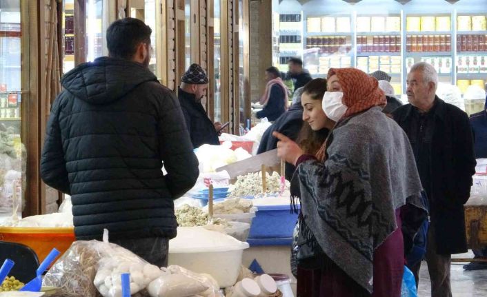 Van’da Tarihi Peynirciler Çarşısı esnafı, soğuk hava nedeniyle müşterilerin rağbet göstermediğini ifade ederek, camdan kovboy kapısı yapılmasını istediler.