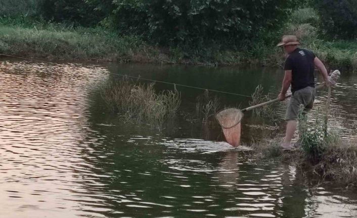 e bağlı Eşenler Mahallesi’nde gelen 40 yaşındaki Özgür Dabanlı, iki dönümlük verimli tarım arazisini havuza çevirdi. Havuzu suyla dolduran Dabanlı, çocuk hayali olan aynalı sazan üretimine başladı. Geçen yıl tarladaki havuzuna 100 bin aynalı sazan bırakan Dabanlı, her gün besleme yaptığı balıklarını gelecek yıl iki şer kilograma çıktığında satışına başlayacağını söyledi. İç Anadolu Bölgesine gönderilecek aynalı sazanların bir bölümü ihracata da gideceğini belirten Dabanlı, bölgenin amatör balıkçılığa da açılacağına dikkat çekti.