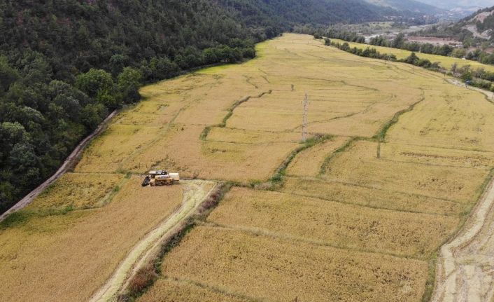 Karabük’te, yaklaşık 500 dekar alanda ekimi yapılan Osmancık çeltiğinin hasadı başladı.