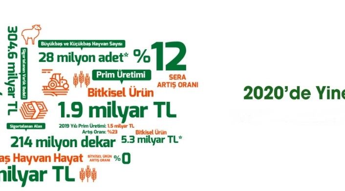 “2019 yılında sigortalı üreticinin ödediği toplam prim tutarı 1 milyar 171 milyon lira iken, 2020 yılında sigortalı üreticinin ödediği toplam prim tutarı 1 milyar 539 milyon lira oldu.