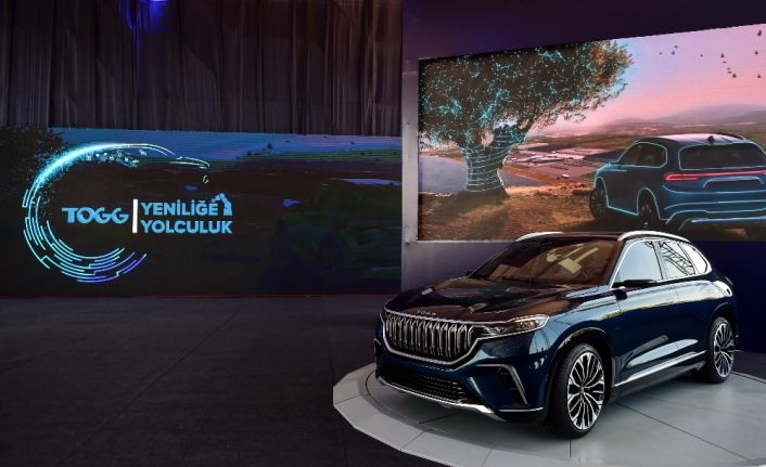 Türkiye’nin Otomobili Ortak Girişim Grubu (TOGG) tarafından Bursa’nın Gemlik ilçesinde kurulan fabrikanın temel atma töreni öncesi gösterimi yapılan kırmızı ve mavi renkteki C-SUV modeli araçlar ihtişamları ile gözleri kamaştırdı.