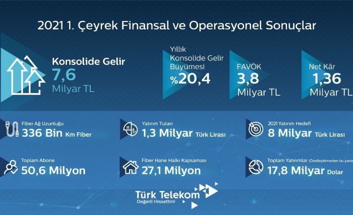 Türk Telekom, 2021’in ilk üç ayında yüzde 20,4 büyüme ile 7,6 milyar TL gelir elde etti.