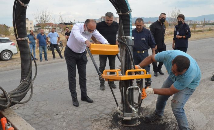 Turgutlu Belediyesi, Türkiye’de bir ilk olan soğuk asfalt yama aracını satın aldı. Soğuk asfalt yama aracıyla çalışmaların ilki Koşukırı mevkisinde, Turgutlu Belediye Başkanı Çetin Akın, Başkan Yardımcıları Ahmet Daşkan ve Evren Erbaş Ser’in katılımıyla gerçekleştirildi.