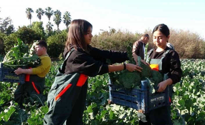 Milli Eğitim Bakanlığının son dönemde tarımsal üretim ve eğitimine önem vermesiyle hareket eden tarım liseleri sahada uygulamalı olarak çalışmalar yapıyor. Bu çerçevede Mersin’in Erdemli ilçesinde bulunan Mesleki ve Teknik Anadolu Lisesi (Tarım Lisesi) öğrencileri, Milli Eğitim Müdürlüğü ile Alata Bahçe Kültürleri Araştırma Enstitüsü’yle imzaladığı protokol sayesinde kavuştukları eğitim tarlasına yaklaşık 3 ay önce 6 bin adet karnabahar, lahana ve brokoli fidesini dikti. Dikilen fideler büyüdü, hasat zamanı geldi. Erdemli Kaymakamı Aydın Tetikoğlu ve İl Milli Eğitim Müdürü Adem Koca, idareciler ve öğrenciler brokoli ve lahananın ilk hasadını yaptı. Hasat edilen ürünlerin ise müdürlük koordinesinde her gün 60 bin kişiye yemek çıkaran öğretmen evine gönderileceği ifade edildi.