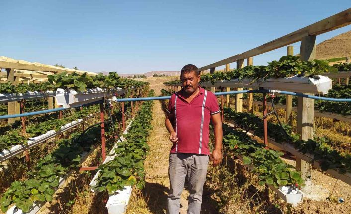 Sivas’ın Gemerek ilçesinde yaşayan veteriner hekim Battal Şahiner, çok katlı topraksız üretimle bir dönümde normalin üç katı çilek elde etti.