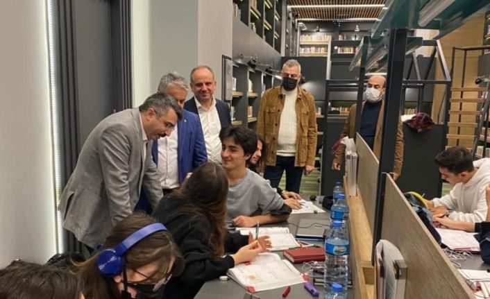 Yıldırım Belediye Başkanı Oktay Yılmaz, Mümine Şeremet Uyumayan Kütüphanesi’nde çalışan öğrencileri ziyaret ederek başarı diledi.