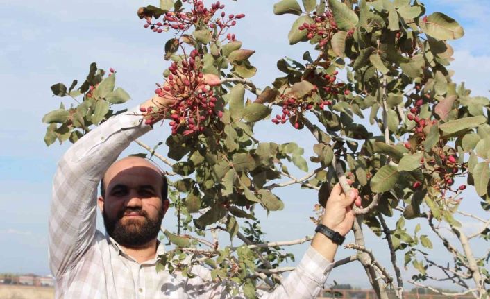 Iğdırlı öğretmen Nihat Alçan, üniversite yıllarında yakından inceleme fırsatı bulduğu Antep fıstığını çölleşmenin görüldüğü yerler arasında yer alan, çok yüksek risk taşıyan bölgelerden biri olan Iğdır Aralık ilçesinde dikti, hasadını da kendisi yaptı.