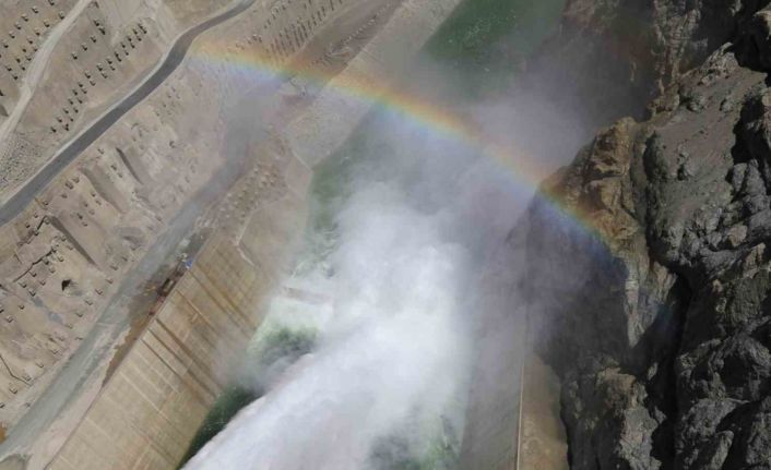 Havaların sıcak olmasıyla basınçlı bir şekilde baraj gövdesinden çıkan sulara gökkuşağı oluşturdu. Baraj gövdesinde oluşan gökkuşağının farklı tonları suyun akıntısına eşlik etti.