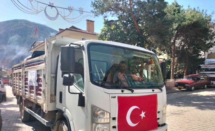 Kamyonlar Türk bayrakları ile süslenirken, Hükümet Konağı’nın önünde yapılacak duanın ardından kamyonlar yeni ilçe merkezine doğru yola çıkacak.
