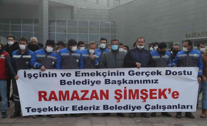 Belediye binası önünde belediye çalışanları ile buluşan Şimşek, “Sizler çalışıyorsunuz bizlerde emeğinizin karşılığını veriyoruz. Bu bizim görevimizdir. İlçeyi ayakta tutan sizlersiniz. Temizleyen, onaran, bakan, güzelleştiren ve insanların rahat yaşamasını sağlayan sizleriniz” ifadelerine yer verdi.