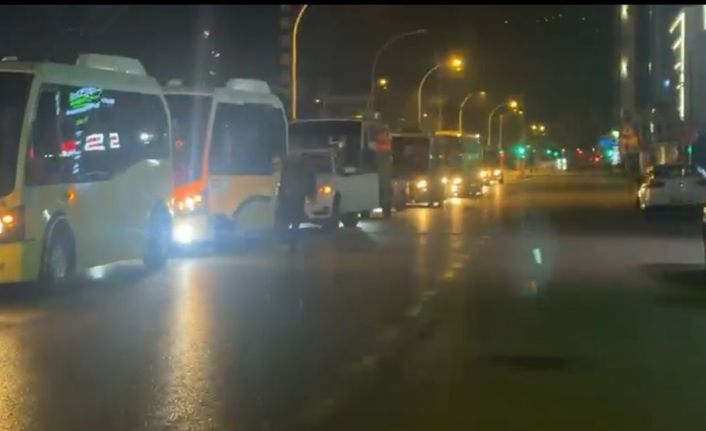 Akşam saatlerinde kent merkezinde bir araya gelen otobüsçüler, araçlarıyla konvoy oluşturarak trafiğe çıktı. Uzun araç kuyruğu oluşturan şoförler, kornalar çalarak tepkilerini dile getirdi.