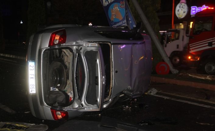 ELAZIĞ’DA İKİ OTOMOBİLİN KARIŞTIĞI KAZADA BİR OTOMOBİL KARŞI ŞERİDE FIRLAYARAK YAN YATTI KAZADA 3 KİŞİ YARALANDI