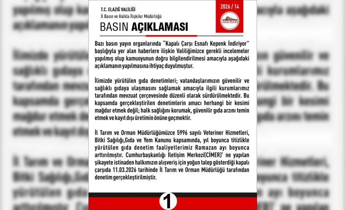 Elazığ Valiliği’nden yapılan açıklamada, "İlimizde yürütülen gıda denetimleri; vatandaşlarımızın güvenilir ve sağlıklı gıdaya ulaşmasını sağlamak amacıyla ilgili kurumlarımız tarafından mevzuat çerçevesinde düzenli olarak sürdürülmektedir. Bu kapsamda gerçekleştirilen denetimlerin amacı herhangi bir kesimi mağdur etmek değil; halk sağlığını korumak, güvenilir gıda arzını temin etmek ve kayıt dışı üretimin önüne geçmektir. İl Tarım ve Orman Müdürlüğümüzce 5996 sayılı Veteriner Hizmetleri, Bitki Sağılığı, Gıda ve Yem Kanunu kapsamında, yıl boyunca titizlikle yürütülen gıda denetim faaliyetlerimiz Ramazan ayı boyunca arttırılmıştır. Cumhurbaşkanlığı İletişim Merkezi(CİMER)’ ne yapılan şikayete istinaden halkımızın alışveriş için yoğun talep gösterdiği kapalı çarşıda 11.03.2026 tarihinde İl Tarım ve Orman Müdürlüğü tarafından denetim gerçekleştirilmiştir. Vatandaşlarımızın güvenilir gıda tüketmesi adına kapalı çarşı esnafına etiketsiz ürün satmaması, gıdaların muhafaza koşullarına ve hijyene dikkat edilmesi hususunda uyarılarda bulunulmuştur. Bu denetimde hiçbir işletmeye yasal işlem yapılmamış olup işletmelere mevzuat kapsamında bilgilendirici eğitim ve rehberlik uygulaması gerçekleştirilmiştir. İl Tarım ve Orman Müdürlüğümüzün amacı köylü ürünü adı altında satılan ama köylü ürünü olmayan, merdiven altı olarak üretilen özellikle büyük çoğunluğu il dışından gelen ve hijyenik olmayan şartlarda üretilen süt ürünlerinin satışının önüne geçmektir. Köylülerimizin kendi getirdikleri ve pazarda, marketlerde ya da kapalı çarşıda satılan ürünlere hiç bir işlem yapılmamaktadır" denildi.