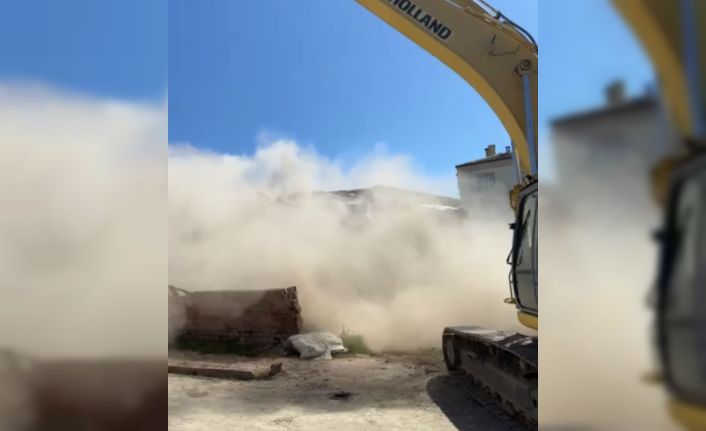 Kahramanmaraş’ta 6 Şubat 2023’te meydana gelen yıkıcı depremlerden etkilenen Elazığ’da ağır hasarlı binaların yıkımı devam ediyor. Bu çerçevede Sürsürü Mahallesinde bulunan 4 kat 8 daireli bir bina iş makinesi ile yıkıldı. Binanın yıkım anı cep telefonu ile görüntülendi.