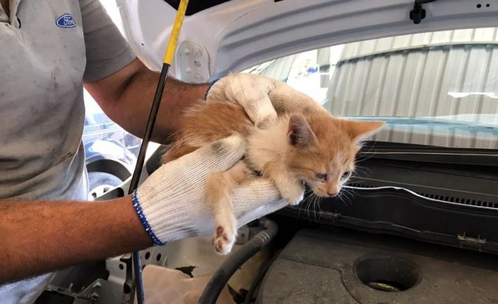 Olay, merkeze bağlı Sanayi Mahallesi Sanayi Sitesi’nde meydana geldi. Alınan bilgiye göre, bakıma bırakılan bir hafif ticari araçtan kedi sesi geldi. Çalışanlar ve servis sahibi Abdulkadir Aytekin, detaylı incelediğinde kedinin motor kısmından girerek far kısmına sıkıştığını fark etti. Servise çekilen aracın motor kısmını açan Aytekin, yavru kediyi bulunduğu yerden çıkarmayı başardı. Kurtarılan kedi su verilmesinin ardından doğal ortamına bırakıldı.