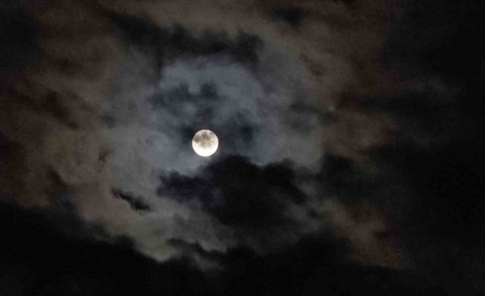 Elazığ’da Ay’ın gökyüzündeki bulutlar arasındaki geçişi hayranlık uyandırdı.