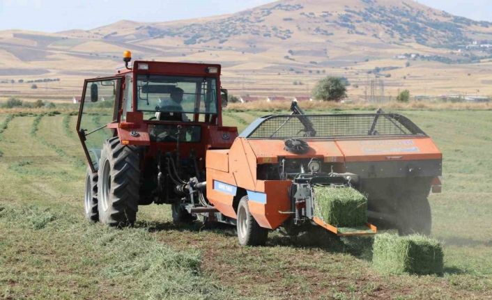Elazığ’da hasat edilen yonca bitkisinin balyalama mesaisi başladı.