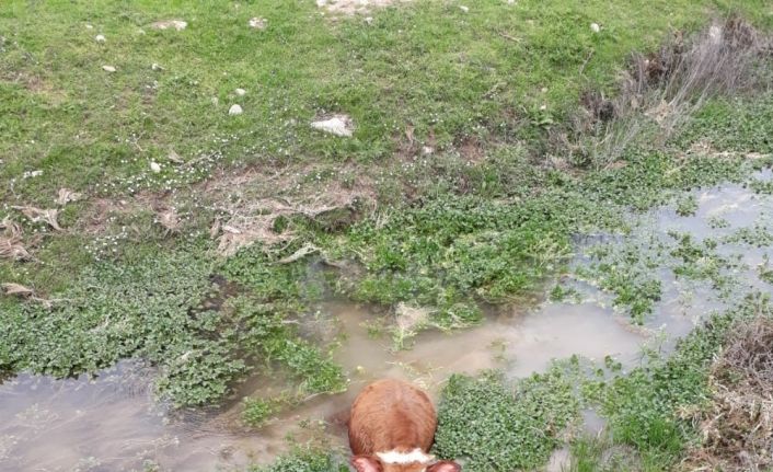 İmam Necattin Çelik,"Bahçemde baharın gelişiyle birlikte ağaçlarımızın bakımını yapıyordum. Komşumuza ait buzağının su yatağındaki bataklığa saplandığını gördüm. Buzağıyı saplandığı yerden kurtarmak için epey uğraştık çok şükür ki kurtarıp sahibine teslim ettik"dedi.
