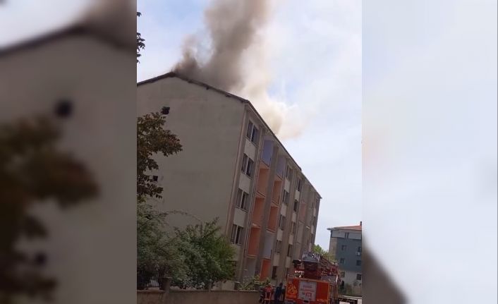 Elazığ’da 6 Şubatta Kahramanmaraş’ta meydana gelen yıkıcı depremlerin ardından ağır hasar alarak boşaltılan 5 katlı binanın çatısında çıkan yangın, büyümeden söndürüldü.