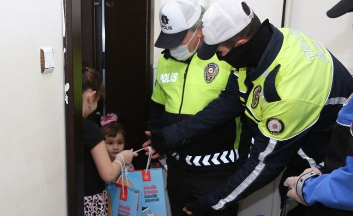 Elazığ’da trafik haftası kapsamında polisler, farkındalık oluşturmak için evleri ziyaret etti çocuklara kapı önünde soru cevaplı hatırlatıcı eğitim vererek hediyelerle mutlu etti.