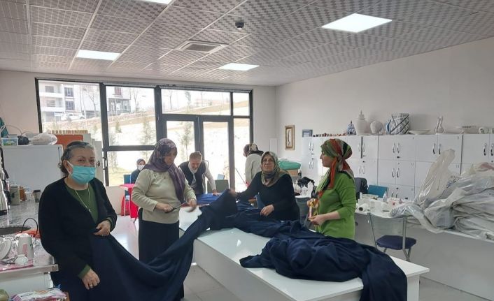 Elazığ Belediyesi, Ekonomi Geliştirme Merkezi (EBEGEM) bünyesinde bulunan çinicilik kursu hocaları ve kursiyerler, battaniye, şal ve panço gibi ürünler yaparak deprem bölgesine gönderiyor.