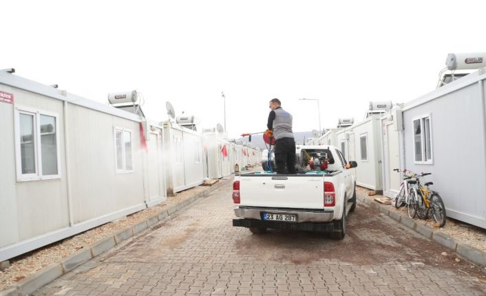 24 Ocak’ta meydana gelen depremin ardından kentin farklı noktalarına kurulan konteyner kentlerde dezenfekte çalışması gerçekleştirildi. Depremzedelerin yaşamlarını sürdürdüğü konteyner evlerin çevreleri ve parkları dezenfekte edildi. Belirli aralıklarla bu çalışmaların yapıldığı aktarıldı.