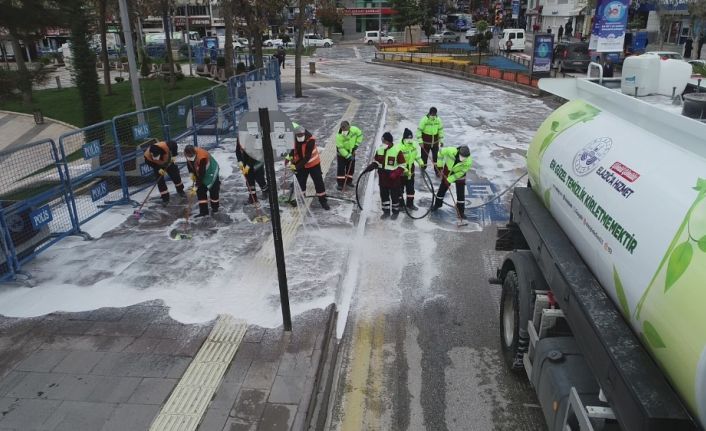 Türkiye genelinde olduğu gibi Elazığ’da da korona virüs salgını nedeniyle alınan tedbirler kapsamında kent genelinde kapsamlı temizlik çalışmaları yapılıyor.