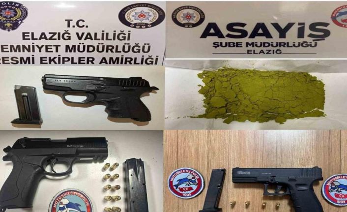 Elazığ’da polis ekipleri tarafından yapılan çalışmada, 5 adet ruhsatsız tabanca ve bir miktar uyuşturucu madde ele geçirildi.