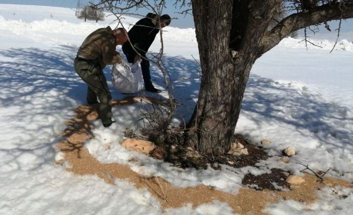 Elazığ’da kış mevsimi nedeniyle yüksek rakımlı bölgelere yaban hayvanları için yem bırakıldı.
