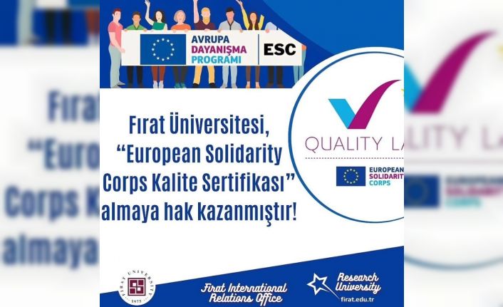Uluslararasılaşma noktasında çalışmalarını sürdüren Fırat Üniversitesi, European Solidarity Corps Kalite Sertifikası (ESC) almaya hak kazandı. Böylelikle Fırat Üniversitesi öğrencileri Avrupa gönüllülük ve staj hareketliliklerine başvurabilecek.