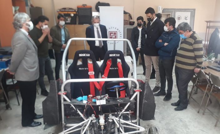 Fırat Üniversitesi’nde (FÜ) üretimi yapılan ve bu yılki yarışmalara katılacak olan elektrikli aracı Rektör Prof. Dr. Fahrettin Göktaş inceleyerek bilgi aldı.