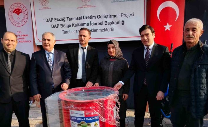 Elazığ’ın Keban ilçesinde çiftçilere çapa, badem silkeleme ve ceviz soyma makineleri dağıtıldı.