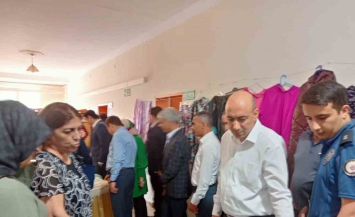 Serginin açılışı yapıldıktan sonra davetliler kursiyerlerin yaptığı çalışmaları inceledi.