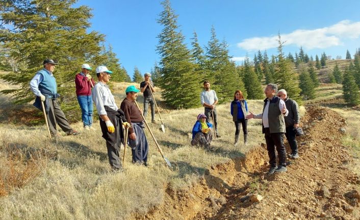 Alandaki fidan dikim çalışmalarını yerinde inceleyen Elazığ Orman Bölge Müdürü Muhammed Salih Çetiner de bölgede fidan dikti.