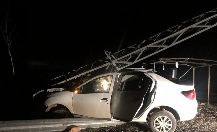 Elazığ’da otomobilin çarptığı aydınlatma direği, aracın üzerine devirdi, sürücü yaralandı.
