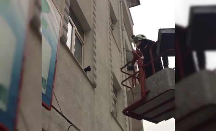 Elazığ’da bir dairenin penceresi önünde mahsur kalan kedi, itfaiye ekipleri tarafından kurtarıldı.